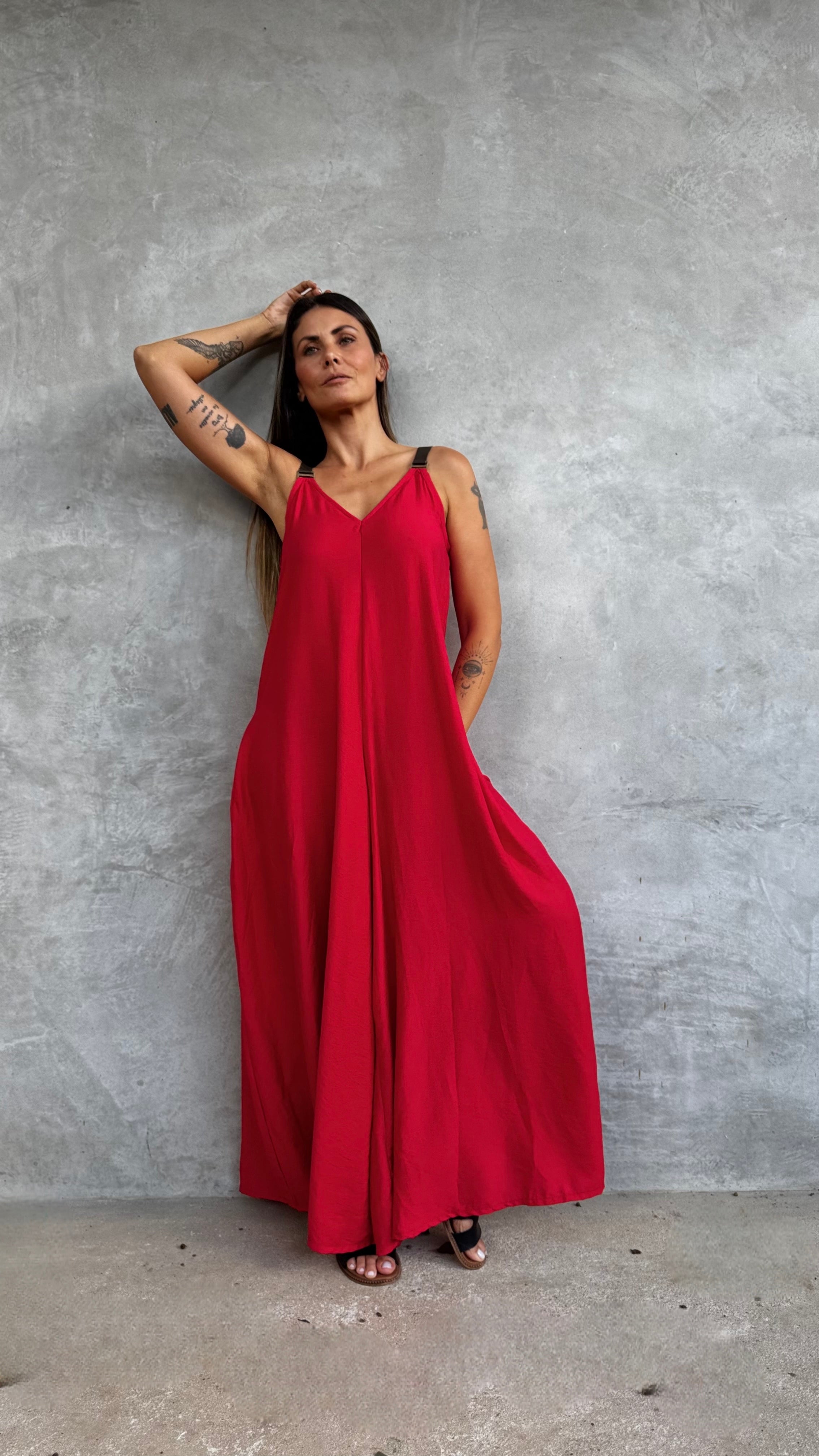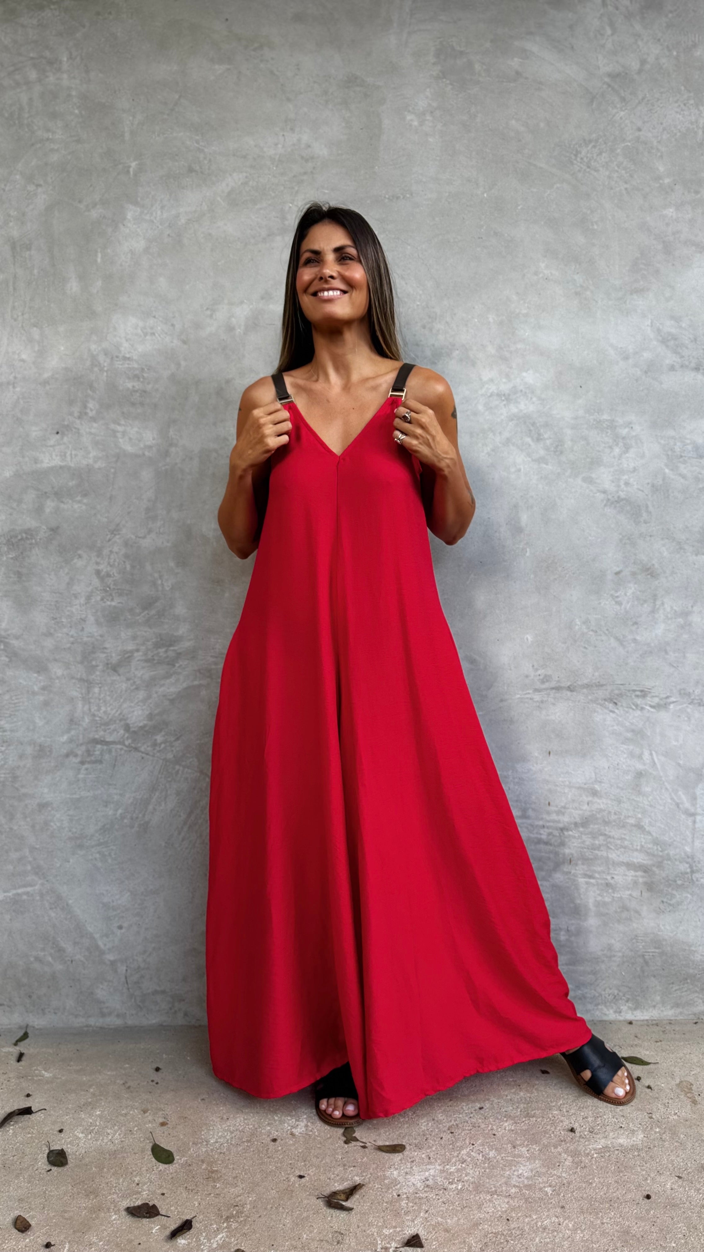 Jumpsuit de rayón, con excelente caída y tirantes de piel ajustables. Diseño amplio, fresco y elegante que brinda comodidad y libertad de movimiento.